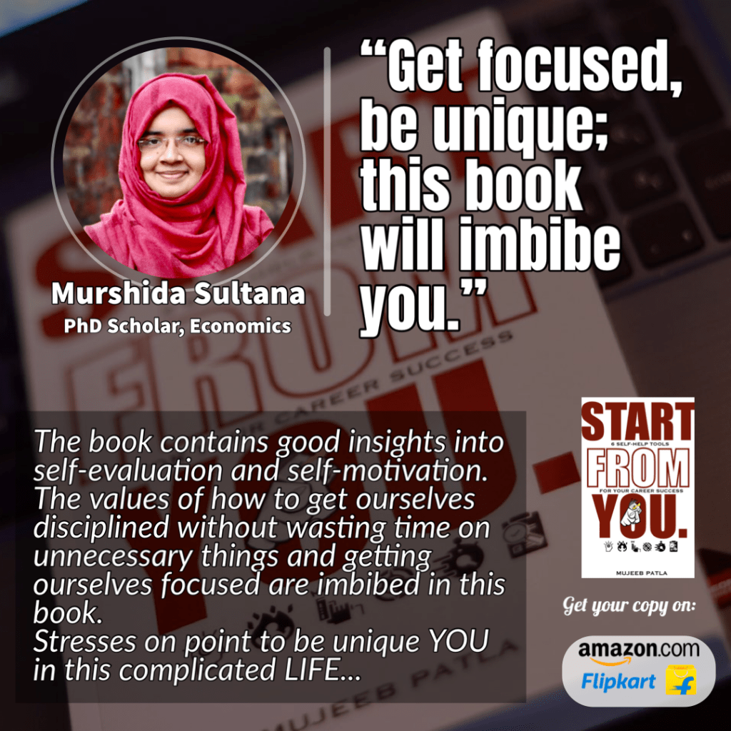 “The book contains good insights into self-evaluation and self-motivation. The values of how to get ourselves disciplined without wasting time on unnecessary things and getting ourselves focused are imbibed in this book. Stresses on point to be unique YOU in this complicated LIFE..”