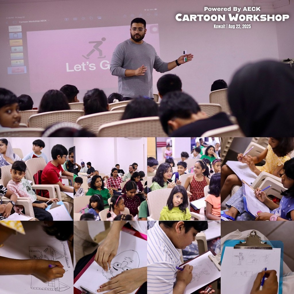 The Alumni Association of Engineering Colleges in Kerala (AECK) launched its 2025-26 calendar year with an engaging Cartoon Workshop titled “Doodle to Destiny” in Kuwait, organized by AECK and led by acclaimed Cartoonist Mujeeb Patla. As reported by IndiansinKuwait.com, the event attracted Indian expatriates, including engineering alumni, students, and families, to explore cartooning as a creative medium. Ms. Siby Sarah Ephrem, AECK President, delivered a warm welcome address, highlighting the role of creativity in uniting the community, while Mr. Gangaprasad, General Convenor of the Kerala Engineers Forum (KEF), AECK’s parent body, underscored the event’s importance in fostering cultural and professional growth. Mujeeb Patla, a distinguished Kerala-based cartoonist, author, and ProdCaster host, guided participants through sketching techniques and narrative-building. With a rich background, Mujeeb won the Best Budding Cartoonist Award in 2008 from the Indian Institute of Cartoonists and has earned multiple awards and recognition from the Kerala Cartoon Academy for his insightful and humorous work. His cartoons, often blending social and professional themes, have been exhibited at prestigious venues like the Lalitha Kala Academy in Kerala and internationally in Brazil in 2021. A dedicated member of the Kerala Cartoon Academy, Mujeeb has also contributed to community efforts, including caricature fundraisers for Kerala’s 2019 flood relief. His expertise made him an ideal facilitator, inspiring attendees to craft their own cartoon characters in a hands-on session that blended fun with skill-building. AECK, under KEF, is a cornerstone of Kuwait’s Indian diaspora, known for events that combine professional development with cultural engagement. The workshop provided a platform for artistic expression, resonating with the community’s Kerala heritage and fostering creativity and problem-solving skills across all ages. Covered by IndiansinKuwait.com, a platform with over 265,000 followers, the event’s success sets a vibrant tone for AECK’s 2025-26 calendar, which will feature more educational and cultural activities. With KEF’s support, AECK continues to strengthen Kuwait’s Indian community, paving the way for a year of innovation and connection through initiatives like “Doodle to Destiny.”