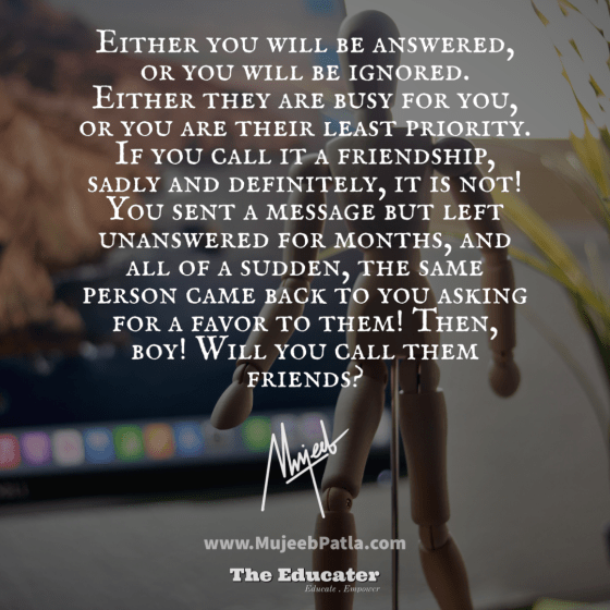 Either you will be answered, or you will be ignored. Either they are busy for you, or you are their … More